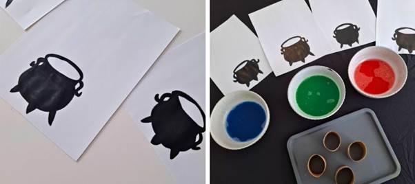 2. Print the cauldron template onto white card. If you only have paper, print it out and glue it onto card to make it sturdier.
