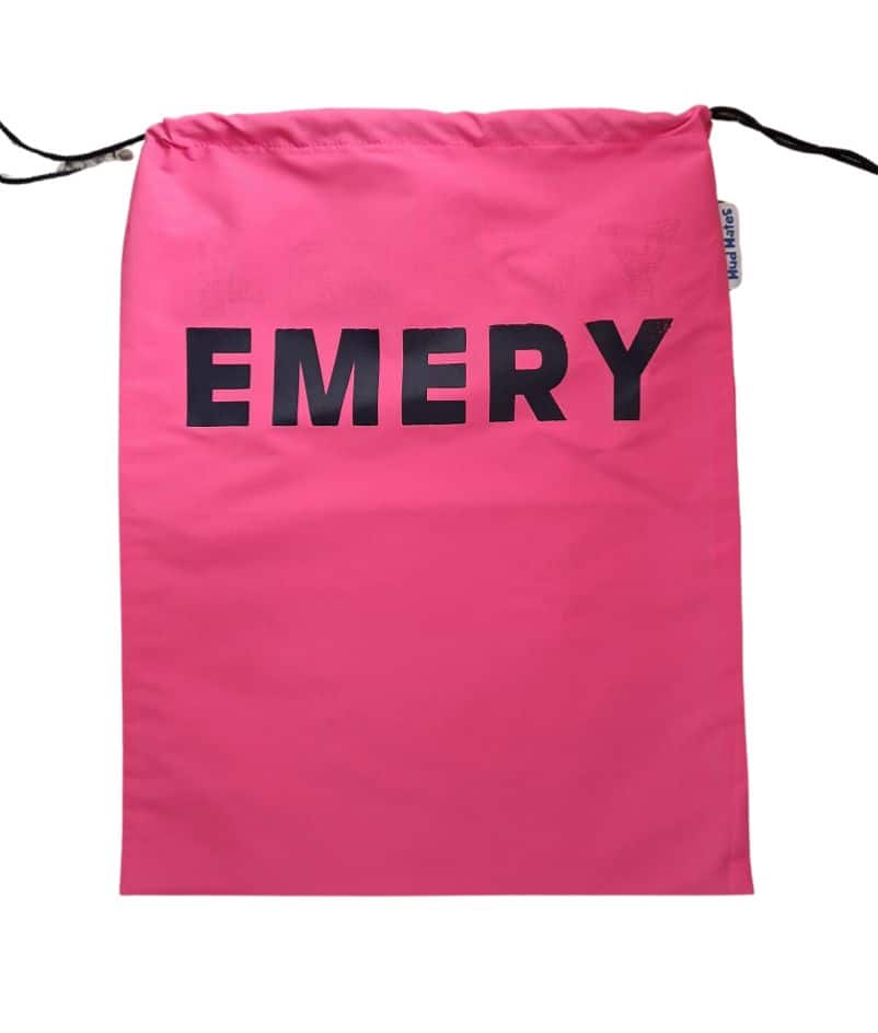 - Pink with navy EMERY – marks below name