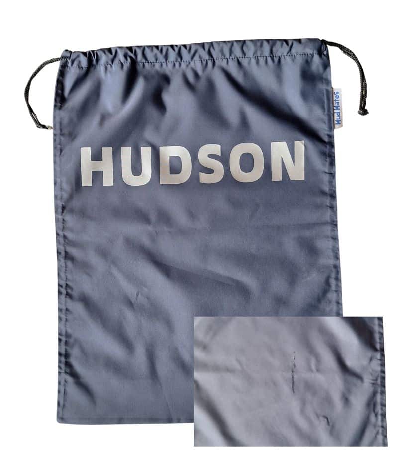 - Navy with silver HUDSON – mark on back of bag